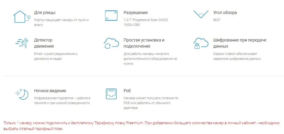 Камера видеонаблюдения Ivideon Bullet IB12 c POE 2Мп, 1920х1080, угол обзора 86,5°, режим ночного видения, с Ethernet и Poe. 3 года Гарантии и бесплатная инженерная поддержка 24/7. Поддержка облачного сервиса Ivideon. Просмотр видео в любом веб-браузере. Мобильные приложения для просмотра видео iOS, Android. Надежное шифрование передаваемых данных* * — при подключении к облачному сервису Ivideon. Блок питания либо адаптер питания POE для данной модели камеры приобретается отдельно.
