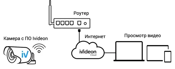 Cхема подключения камеры со встроенным сервисом Ivideon: