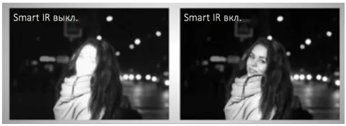 Smart IR автоматически регулирует мощность излучения в зависимости от расстояния до наблюдаемого объекта в кадре. Это позволяет избежать засвечивания близко расположенных или приближающихся к камере объектов.