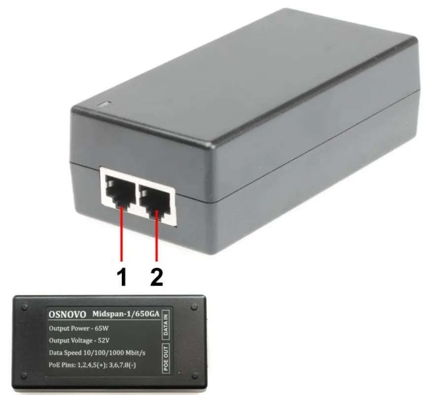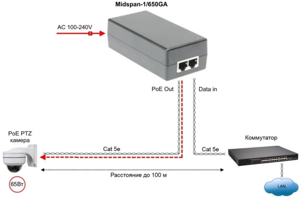 Типовая схема подключения инжектора Midspan-1/650GA с мощной PoE камерой