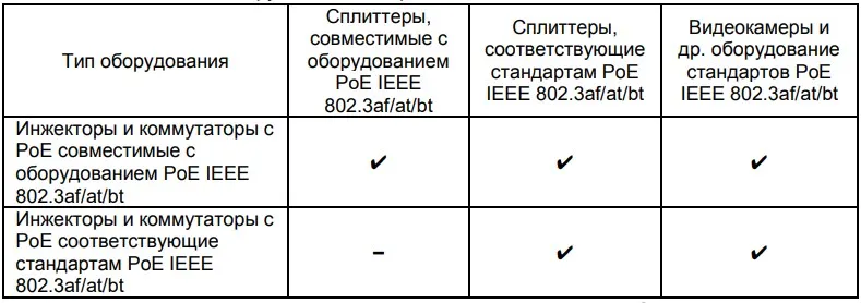 Совместимость оборудования РоЕ разных типов