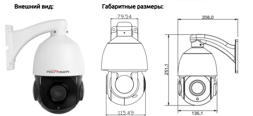 Углы поворота По горизонтали: 0&hellip,360(бесконечно) По вертикали: 90 Скорость вращения Поворота: 0,6&hellip,200 Наклона: 3,5&hellip,100