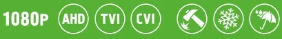 AHD, TVI: 5 Мпикс. (20 / 12,5 кадров/сек.), 4 Мпикс. (25 кадров/сек.), 2 Мпикс. (25 кадров/сек.)