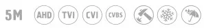 - AHD, TVI: 5 / 4 / 2 Мпикс., CVI: 4 / 2 Мпикс., CVBS: 960H
