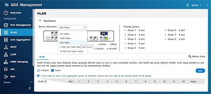 Система управления коммутаторов QNAP (QSS) имеет удобный веб-интерфейс с дополнительными функциями, упрощающими настройку и управление сетью.