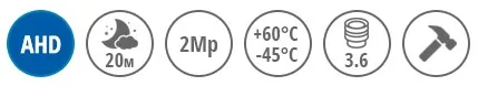 - Фокусное расстояние: 3,6mm (соответствует 82° по горизонтали)