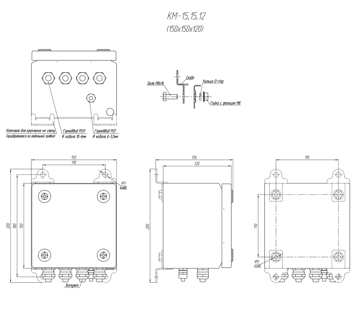 • Габаритные размеры (без гермовводов): 150x150x1201.