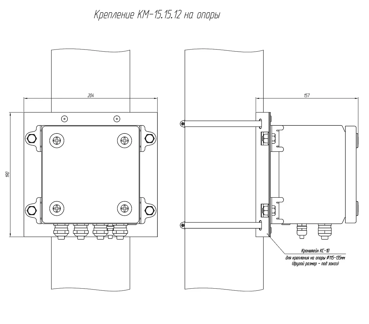 Монтаж на квадратные и круглые опоры с помощью кронштейна КС-10
