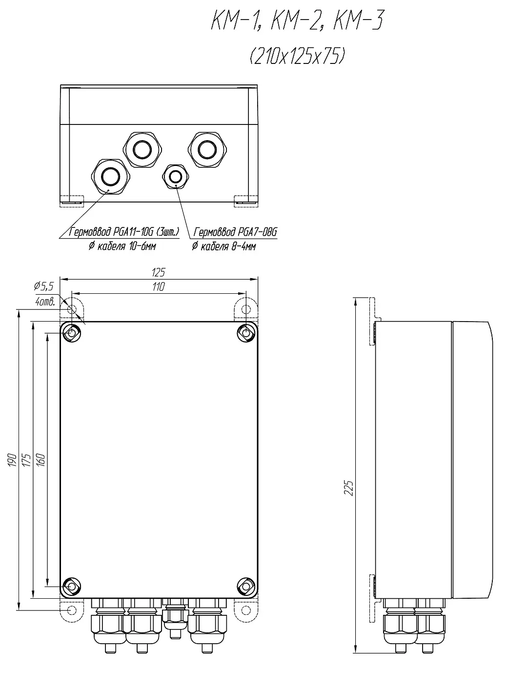 - Габаритные размеры (с гермовводами): 210х125х75 мм
