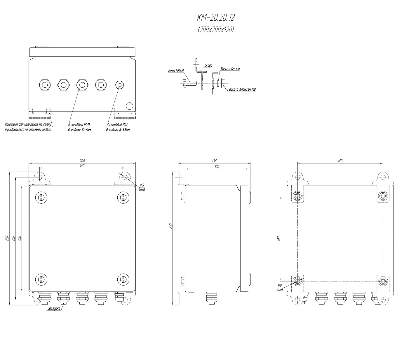 Коробки монтажные КМ-20.20.12 предназначены для коммутации цепей питания и линий связи, установки устройств защиты от импульсных перенапряжений и любого другого электронного оборудования, и защиты их от воздействия окружающей среды. Коробки оборудованы тамперным контактом для сигнализации о несанкционированном доступе и клеммой заземления.