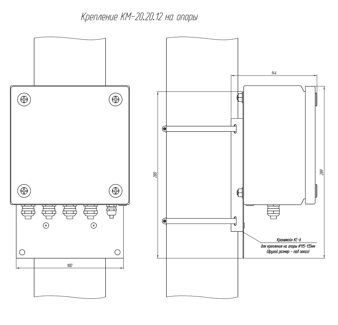 Монтаж на квадратные и круглые опоры с помощью кронштейна КС-6