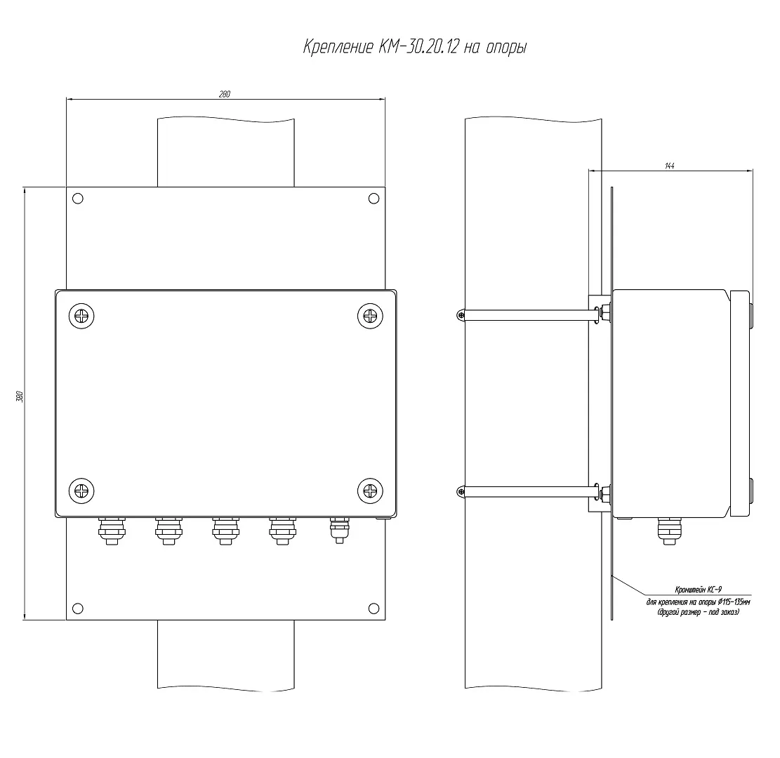 Монтаж на квадратные и круглые опоры с помощью кронштейна КС-9