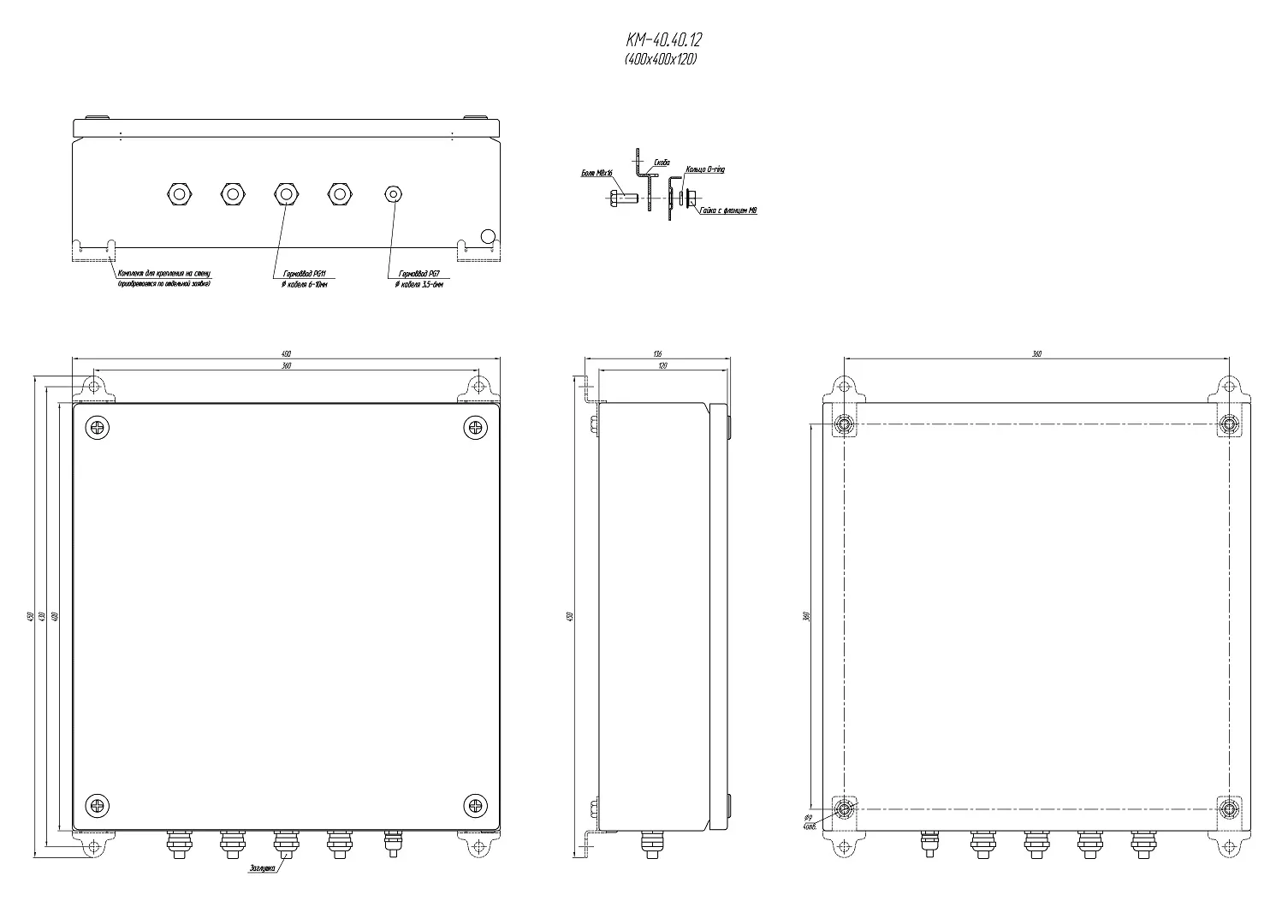 • Габаритные размеры (без гермовводов): см.рис.