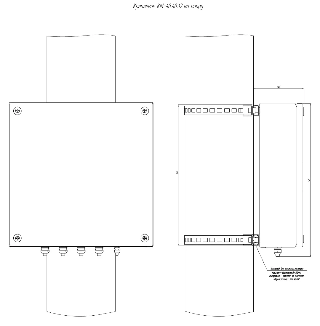Монтаж на квадратные и круглые опоры с помощью кронштейна КС-9