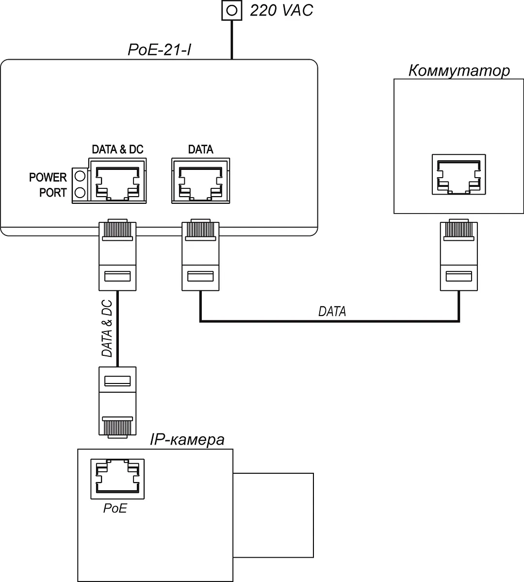 Инжектор PoE-21-I предназначен для питания по сети Ethernet IР-камер или другого оборудования, поддерживающего стандарты технологии PoE IEEE 802.3af, IEEE 802.3at.