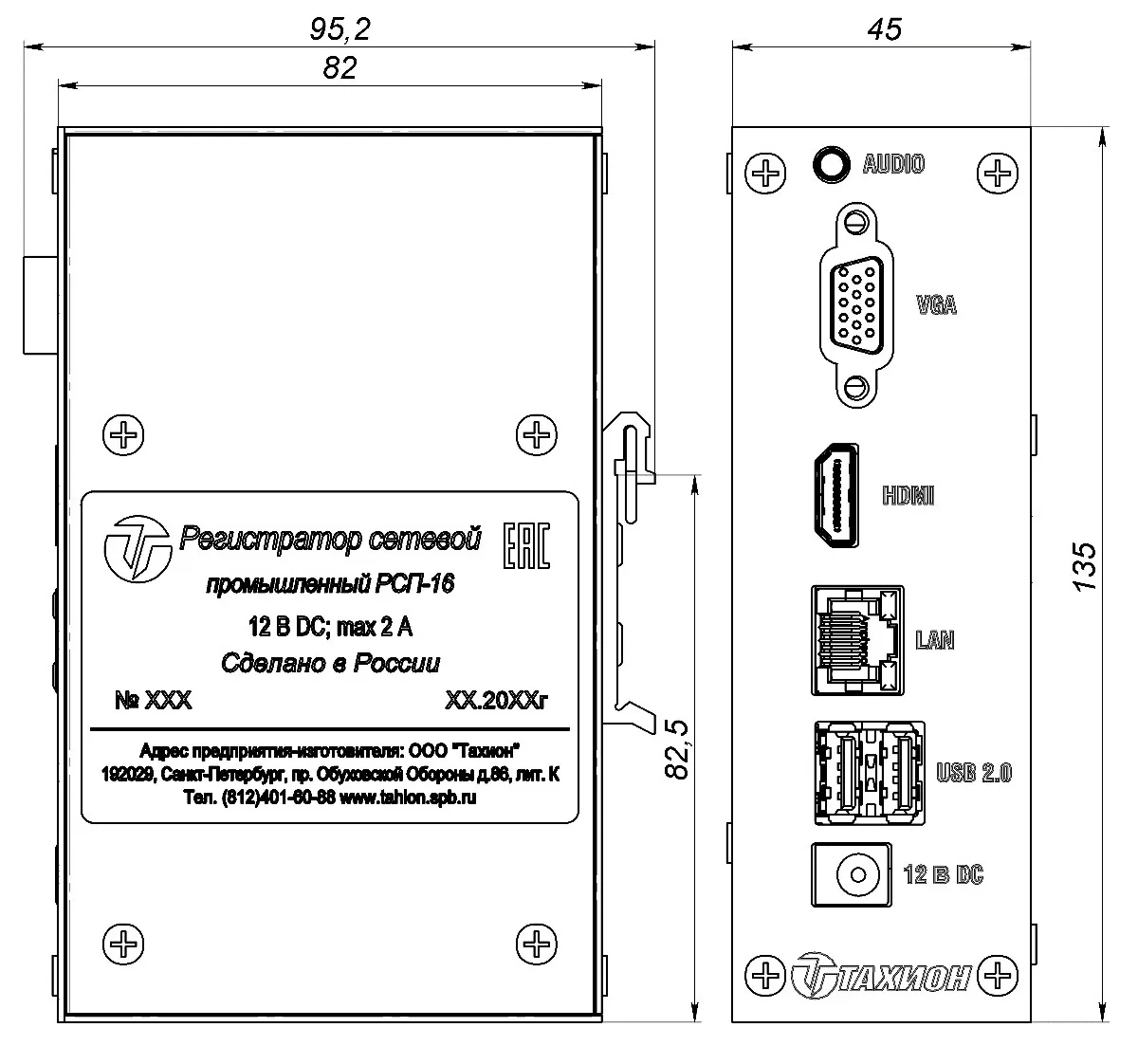 Конструктивно регистратор РСП-32 выполнен в компактном металлическом корпусе для установки на DIN-рейку в шкаф или на стену.