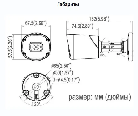 Габариты 152 x 68 x 58 мм (с кронштейном)