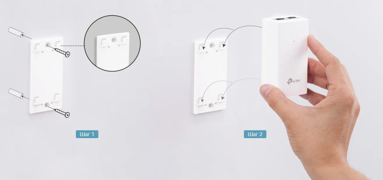 В комплекте с TL-POE2412G идёт крепёж для настенного крепления.