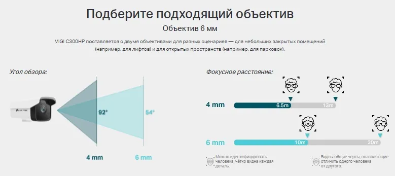 - Объектив 4 мм: камеры VIGI подходят для разных сценариев для небольших закрытых помещений (например, лифтов) и для открытых пространств (например, парковок).
