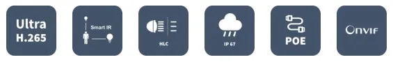 Минимальная освещенность: 0.05Lux, c ИК 0Lux. Класс защиты: IP67. Температура эксплуатации: -40C до +60C. Питание: 12V DC ±, 25%, PoE. Потребляемая мощность: 5.5 Вт. Металлический корпус. Вес: 0.45 кг. Размеры (Д х Ш х В): 167.3 x 62.9 x 62.7 мм.