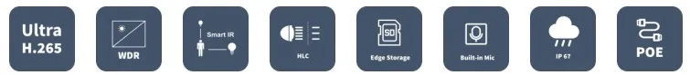 Интеграция: ONVIF, API. Встроенный микрофон. Минимальная освещенность: Цвет 0.01 Lux (F2.0, AGC ON), c ИК 0Lux. Класс защиты: IP67. Температура эксплуатации: -40C до +60C. Питание: 12V DC ±, 25%, PoE. Потребляемая мощность: 5.5 Вт. Вес: 0.33 кг. Размеры (Ø, x H): Ø, 118 x 96 мм.