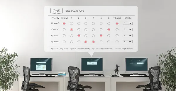 Функция QoS (Quality of service) назначает разные приоритеты приложениям, пользователям или потокам видео/аудио/голоса либо гарантирует заданный уровень производительности для определенных потоков данных.
