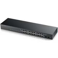 Zyxel GS1900-24 - интеллектуальный коммутатор Gigabit Ethernet с 24 разъемами RJ-45 и 2 SFP-слотами. Коммутаторы серии 1900 относятся к сегменту интеллектуальных коммутаторов. Мастер первоначальной настройки находится в веб-интерфейсе для упрощенной настройки сетевых параметров. Администрирование коммутаторов доступно по протоколу SNMP, загрузка обновленных микропрограмм может быть осуществлена по TFTP, а контроль нештатных ситуаций в работе устройства – по журналу событий Syslog. Функция LLDP позволяет коммутаторам оповещать локальную сеть о своем существовании и характеристиках, а также собирать такие же оповещения, поступающие от соседних коммутаторов.