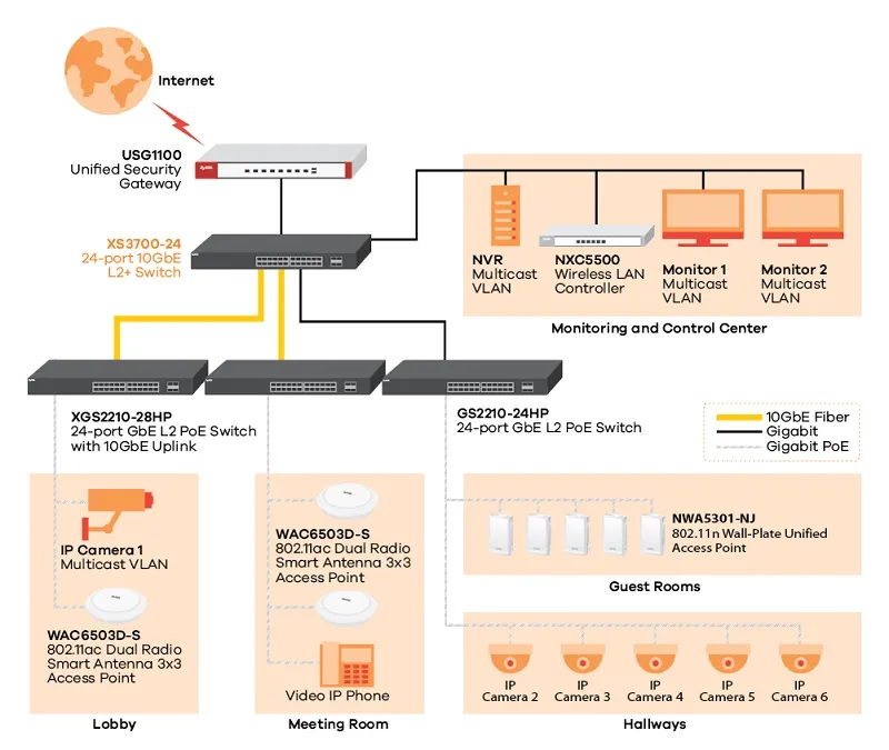 Zyxel XGS2210/GS2210 Series использует мощный функционал Layer 2 для организации передачи по сети трафика VoIP, видеоконференций, IPTV и IP-камер наблюдения, предоставляя отелям, компаниям и образовательным учреждениям гибкое и эффективное управление трафиком современных конвергентных приложений.