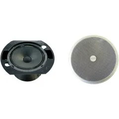 Громкоговоритель Inter-M CS-03A мощностью 3 Вт представляет собой широкополосное акустическое устройство потолочного типа, обеспечивающее воспроизведение голосовых сообщений и музыкальных композиций на трансляционной линии c напряжением 100 В. Акустическая система отлично подходит для озвучивания торгового центра, кафе, ресторана, театра, офиса, гостиницы, образовательного учреждения и спортивного комплекса. Основными частями являются: динамическая акустическая головка и согласующий трансформатор, размещённые в пластмассовом защитном колпаке, и круглая стальная декоративно-защитная сетка светло-серого цвета. Низкоомная динамическая головка снабжена лёгким бумажным диффузором размером 5,8″ на эластичном подвесе, что обеспечивает широкополосное и широкоугольное воспроизведение сигналов. Благодаря гарантированному запасу по мощности, данная головка имеет повышенную надёжность. Высококачественный трансформатор осуществляет согласование динамической головки с линией трансляции. Отводы обмоток трансформатора позволяют использовать громкоговоритель на полную, половинную или треть номинальной мощности. В громкоговорителе имеются выводы с необходимой цветовой маркировкой для наружного подключения. Подключение громкоговорителя к линии осуществляется посредством дополнительной колодки с креплением «под винт» или при помощи пайки. Монтаж громкоговорителя выполняется в подвесной потолок через отверстие диаметром 200 мм. Громкоговоритель фиксируется поверх потолочного отверстия за счёт корпусных скоб на пружинах пластмассового колпака, притягивающих декоративно-защитную сетку к потолку снизу.