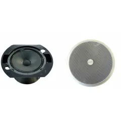 Громкоговоритель Inter-M CS-05 мощностью 5 Вт представляет собой широкополосное акустическое устройство потолочного типа, обеспечивающее воспроизведение голосовых сообщений и музыкальных композиций трансляционной линии c напряжением 100 В. Акустическая система на базе отлично подходит для озвучивания торгового центра, кафе, ресторана, офиса, гостиницы, театра, образовательного учреждения и спортивного комплекса. Основными частями являются: динамическая акустическая головка и согласующий трансформатор, размещённые в пластмассовом защитном колпаке, и круглая стальная декоративно-защитная решётка белого цвета. Низкоомная динамическая головка снабжена лёгким бумажным диффузором размером 5,8″ на эластичном подвесе, что обеспечивает широкополосное и широкоугольное воспроизведение сигналов. Благодаря гарантированному запасу по мощности, данная головка имеет повышенную надежность. Высококачественный трансформатор осуществляет согласование динамической головки с линией трансляции. Отводы обмоток трансформатора позволяют использовать громкоговоритель на полную, половинную или четверть номинальной мощности. В громкоговорителе имеются выводы с необходимой цветовой маркировкой для наружного подключения. Подключение громкоговорителя к линии осуществляется посредством дополнительной колодки с креплением «под винт» или при помощи пайки. Монтаж громкоговорителя выполняется в подвесной потолок через отверстие диаметром 200 мм. Громкоговоритель фиксируется поверх потолочного отверстия за счёт корпусных скоб на пружинах пластмассового колпака, притягивающих декоративно-защитную решётку к потолку снизу.