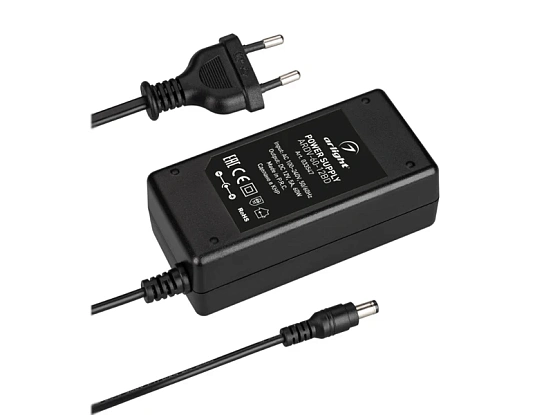 Сетевой адаптер с гальванической развязкой для светодиодных изделий. Входное напряжение 100-240 VAC. Выходные параметры: 12 В, 5 А, 60 Вт. Негерметичный пластиковый корпус IP 20. Габаритные размеры длина 103 мм, ширина 50 мм, высота 34 мм (размер без вилки). Длина кабеля 1.5 м, коннектор 5.5x2.1x10мм. Гарантийный срок 3 года.