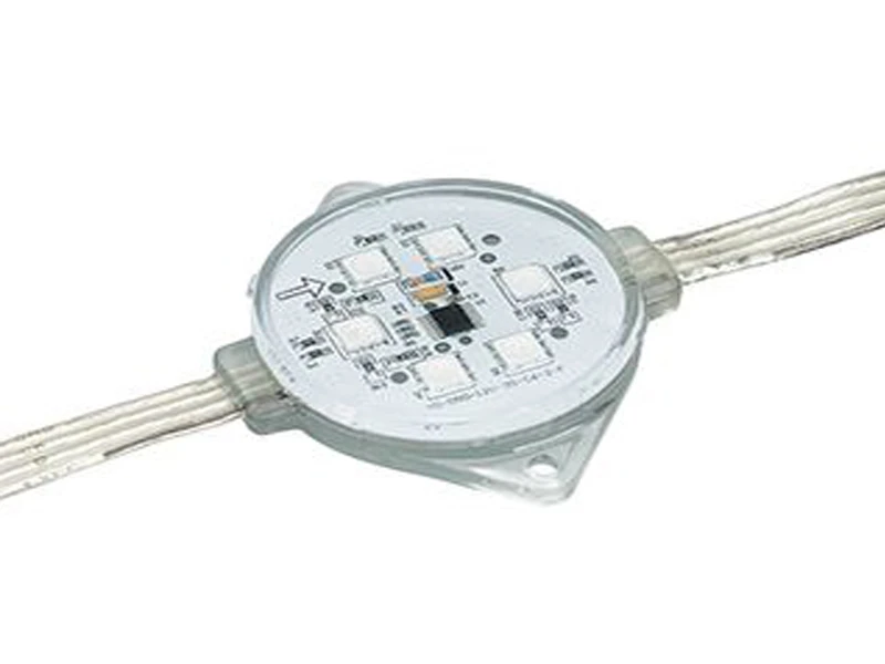 Герметичный управляемый RGB-Модуль (6 светодиодов smd 5050, прозрачный экран, угол 120 град), управляется контроллерами HX-805 и HX-801SE. 12В, 1.44Вт, IP68. Габариты D50xH13,6 мм. Расстояние между центрами соседних модулей 230 мм. Высокий уровень защиты от случайных механических повреждений. Гарантия 3 года с даты продажи.