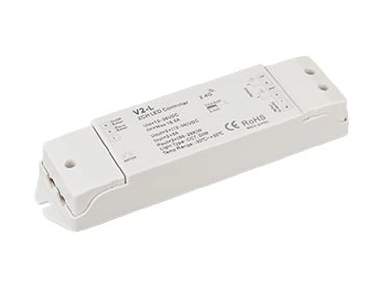 Контроллер для светодиодной MIX ленты (ШИМ). Питание/рабочее напряжение 12-36 VDC, максимальный ток 8 A на канал, 2 канала, максимальная мощность 192-576 W. Винтовые клеммы. Корпус - PVC. Габариты 175 x 45 x 27 мм. Управляется пультами и панелями серии SMART (поставляются отдельно).