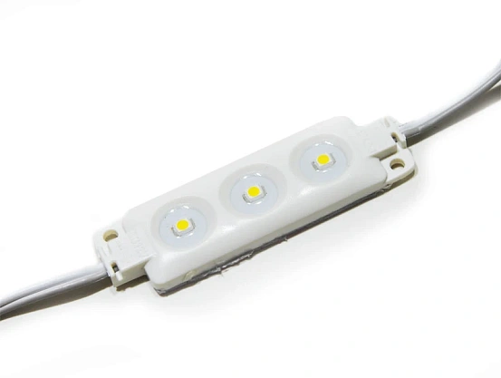 Модуль 3 светодиода smd 3528, питание 12В, мощность 0.27Вт, угол 120°, IP65. Габариты 68.2х19.5х5.7 мм. На проводе 20шт, Расстояние между модулями 76мм