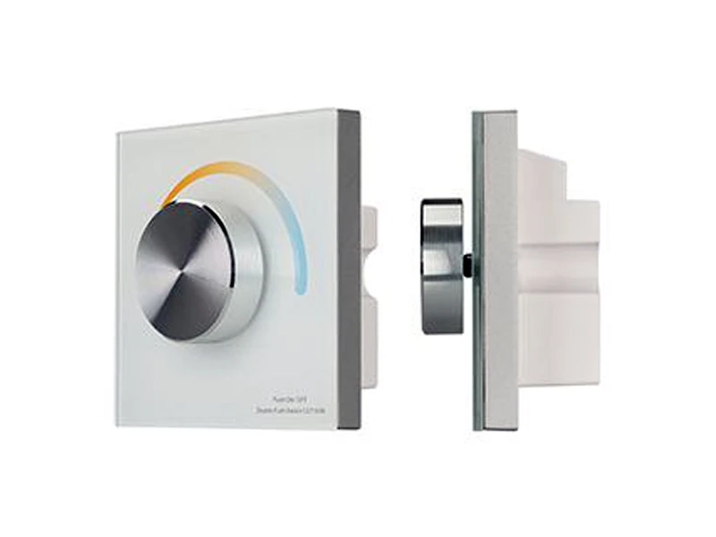 Встраиваемая роторная стеклянная панель 2.4 ГГц, цвет белый. Для управления MIX (CCT) источниками света (ШИМ). Управление цветовой температурой с помощью ротороного вращателя. Работает в режиме master/slave и может выполнять функцию независимого контроллера. Питание/рабочее напряжение 12-24 VDC, максимальный ток 5 A на канал, 2 параллельных канала, максимальная суммарная мощность 120-240 W. Габариты 86 х 86 х 50 мм. Панель совместима с контроллерами серии SMART.