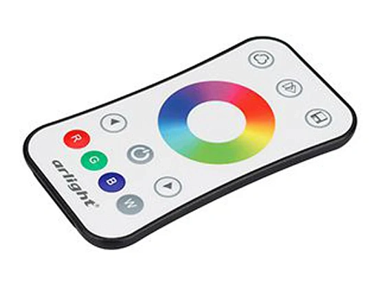 Кнопочный радиопульт с сенсорным кольцом 2.4 ГГц белого цвета для управления RGB/RGBW источником света. 1 зона управления, выбор цвета с помощью сенсорного кольца. Питание 3 VDC (CR2032). Габариты 107 x 58.5 x 9 мм. Изготовлен из пластика с покрытием, защищающим от загрязнения. Управляет контроллерами и панелями серии SMART (поставляются отдельно). Каналы 4-RGBW. Гарантия 2 года с даты продажи.
