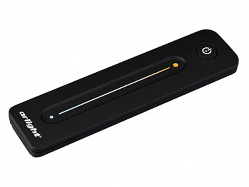 Пульт-слайдер 2.4 ГГц черного цвета для управления мультибелыми MIX источниками света. 1 зона управления, память пользовательских настроек, управление температурой света с помощью сенсорного слайдера. Питание 3VDC (CR2032). Габариты 139 x 36 x 11 мм. Изготовлен из пластика с покрытием Soft Touch. Совместим с диммерами, контроллерами и панелями серии SMART (поставляются отдельно).