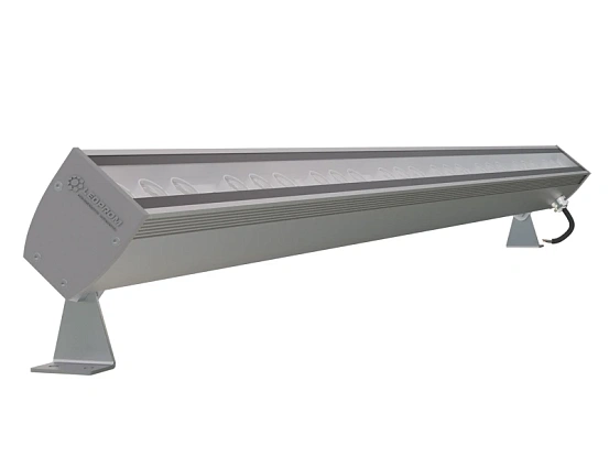 Корпус изготовлен из алюминиевого сплава методом экструзии. Боковые крышки изготовлены из листовой стали (алюминиевый сплав). Светильник оснащен поворотными кронштейнами из нержавеющей стали с углом поворота 180°.Корпус светильника имеет пазы, что позволяет помещать узел крепления к кронштейну в любом месте и перемещать узел крепления вдоль паза. В конструкции корпуса применяется съемный теплоотводящий элемент для монтажа светодиодного кластера.
