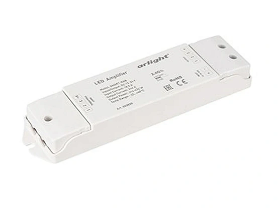 RGB-усилитель. Питание 12-24VDC. 3 канала, ток нагрузки 3x6A, мощность нагрузки 216-432W. Размер 175 x 45 x 27 мм. Гарантия 2 года с даты продажи.