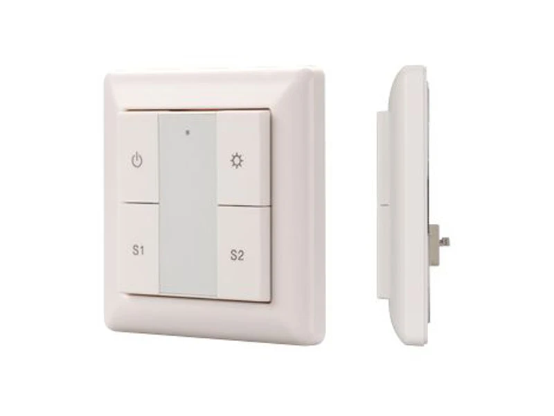 Встраиваемая кнопочная белая пластиковая панель для работы по протоколу DALI. Включение/выключение, диммирование, вызов и сохранение 2-х сцен в 1 группе. Установка номера группы и номера первой сцены выполняется переключателями на корпусе. Питание от шины DALI (4 мА).