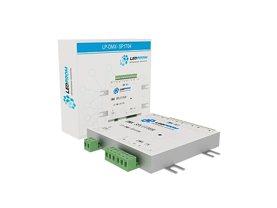 Сплиттер предназначен для разветвления дифференциального сигнала EIA/TIA-485 (RS485) с пропускной способностью до 1Мбит. Совместим с любым стандартным ПО, работающим с протоколом обмена данными DMX-512. Выходной сигнал: 4 канала DMX-512. Потребляемый ток: