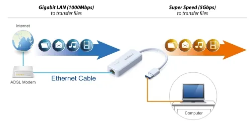 Адаптер EU-4306 поддерживает USB 3.0, новейшую спецификацию USB стандарта, обеспечивающую максимальную скорость передачи данных 5 Гбит/с, до 10 раз быстрее, чем существующий USB 2.0 стандарт, который дает максимальную скорость 480 Мбит/с. USB 3.0 стандарт обеспечивает полную скорость стандарта 10/100/1000 Мбит/с Gigabit Ethernet, которая может достигаться через существующий USB порт, нет необходимости в установке гигабитной Ethernet карты.