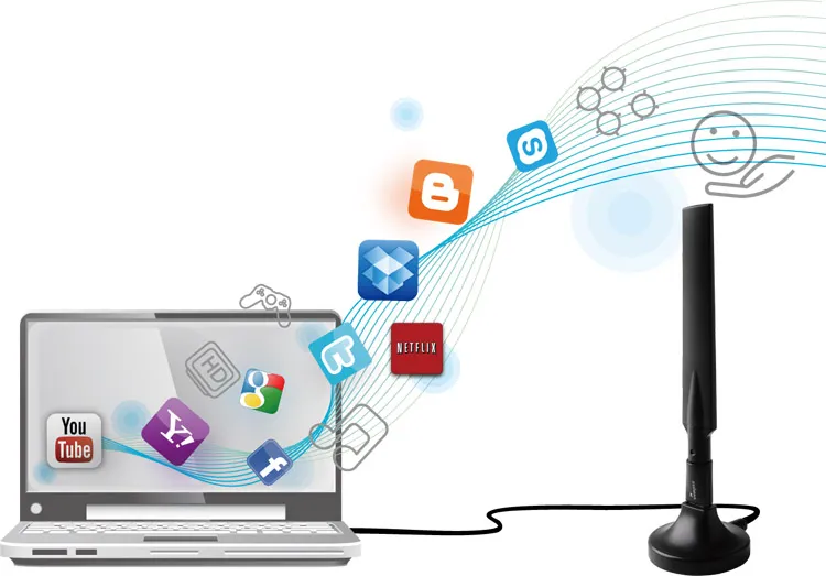 Адаптер укомплектован 1.2 м удлинителем для более гибкого размещения. Расположите антенну в точке наибольшего сигнала..