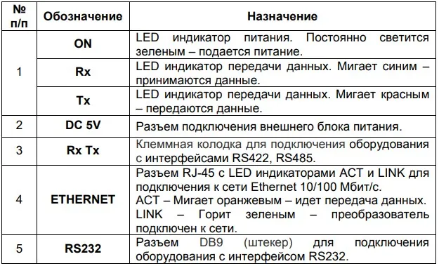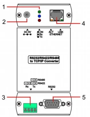- Тип устройства: Преобразователь интерфейса RS232, RS422, RS485 в Ethernet