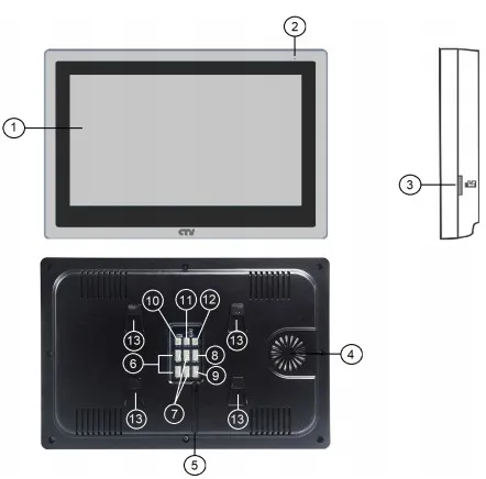 Цветной видеодомофон (монитор) CTV-M4104AHD предназначен для организации контроля доступа и двусторонней аудио и видео связи с посетителем при подключенной ответной части - вызывной панели CTV.