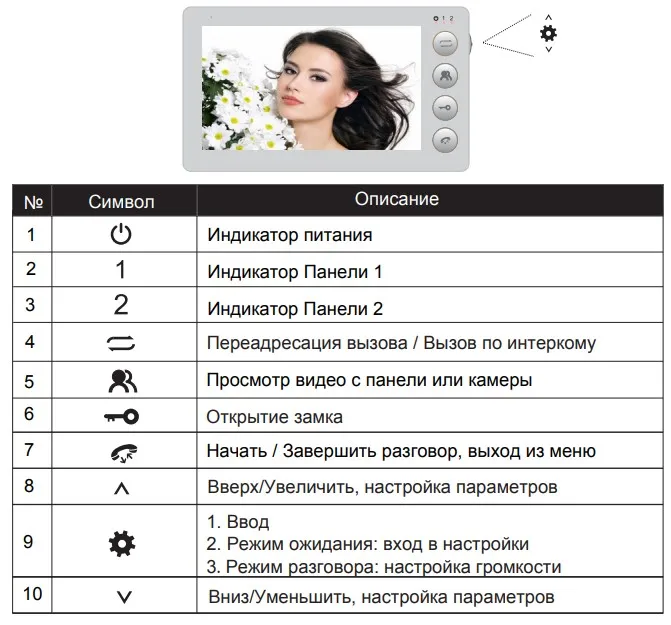 • Управление замком: Вызывная панель