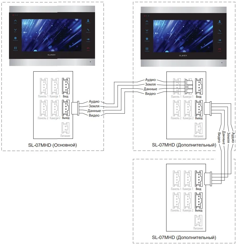 Подключение вызывных панелей и камер к домофону SL-07MHD.