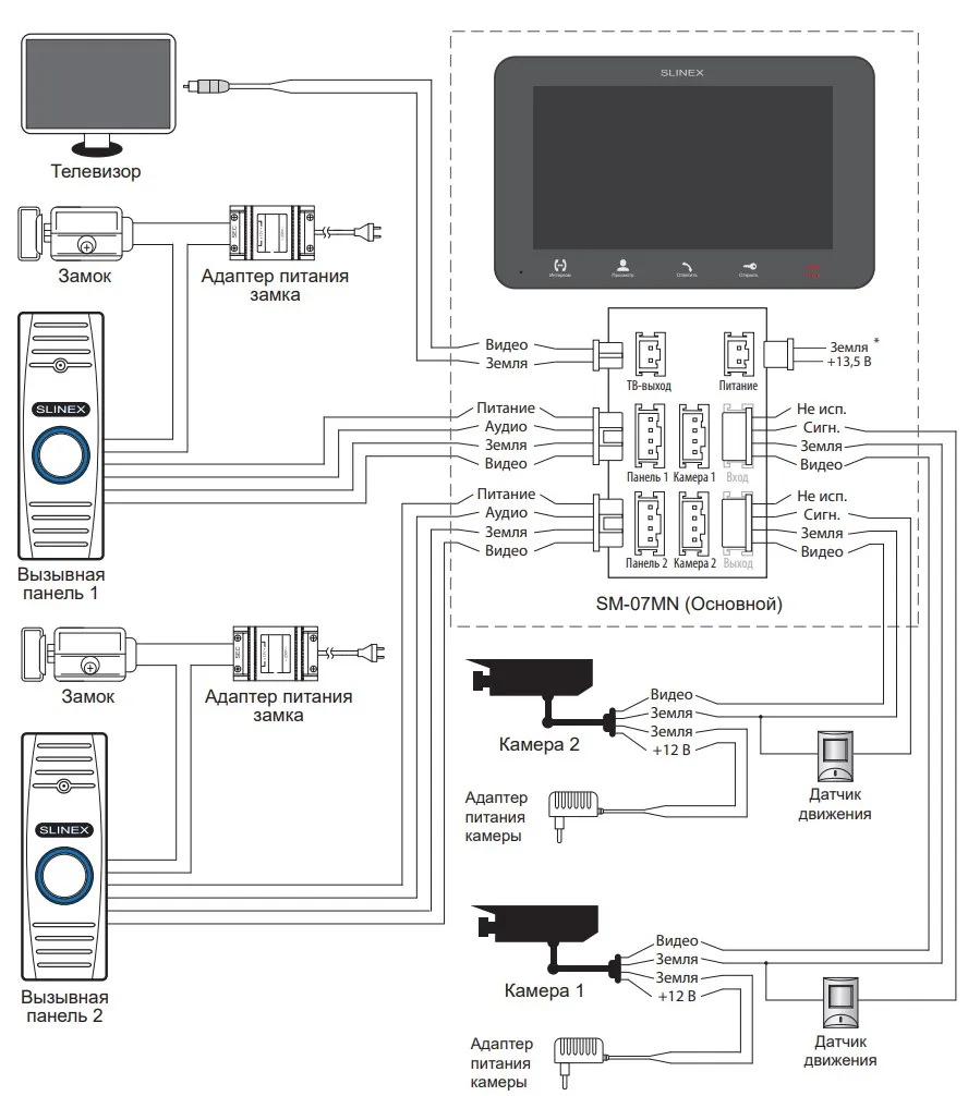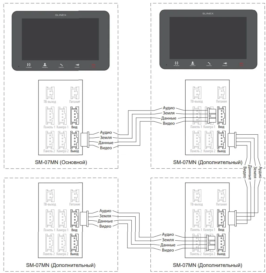 Подключение вызывных панелей, камер и телевизора к домофону SM-07MN