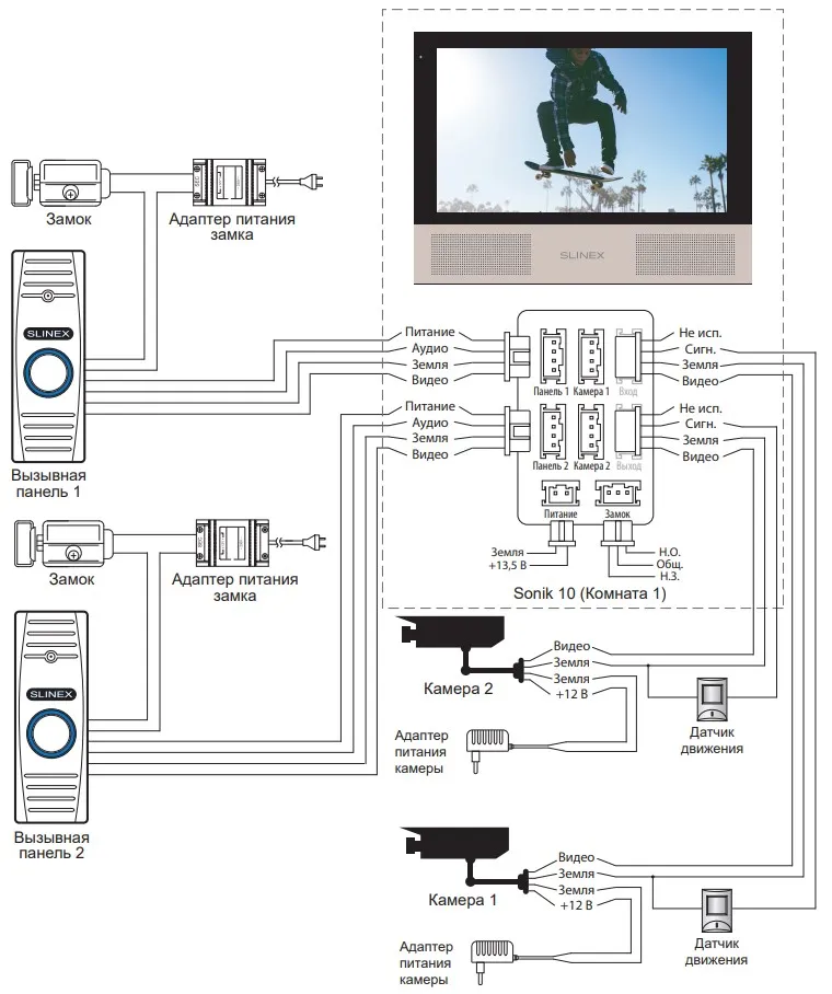 Подключение вызывных панелей и камер к домофону Sonik 10