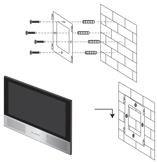 4) Зафиксируйтке кронштейн домофона на стене с помощью саморезов.